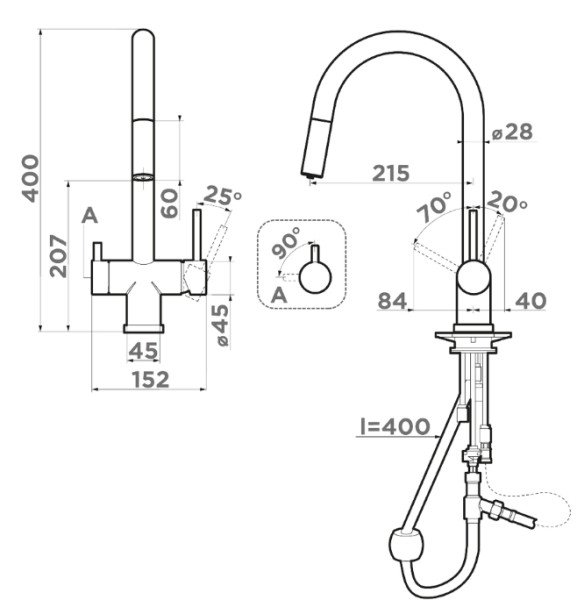 | Тип | С выдвижным изливом и краном для питьевой воды |