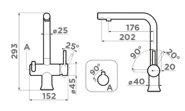 | Управление | однорычажный, отдельная ручка для управления питьевой водой |