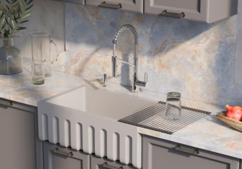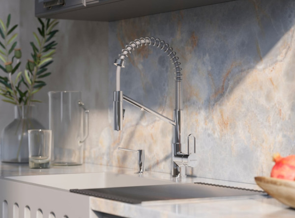 • Смеситель 4 в 1: функция подачи холодной/горячей воды, возможность подключения фильтров для очистки, наличие гибкого шланга и функции переключения воды на 2 режима (струя и душ). Новая удобная технология системы ручки 2 в 1 MULTI позволяет переключить водопроводную воду на фильтрованную в одно касание;