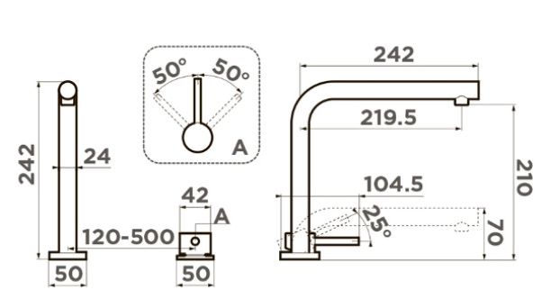 • Рычаг регулировки температуры и напора воды вынесен отдельно и может быть установлен в любом месте рядом со смесителем.