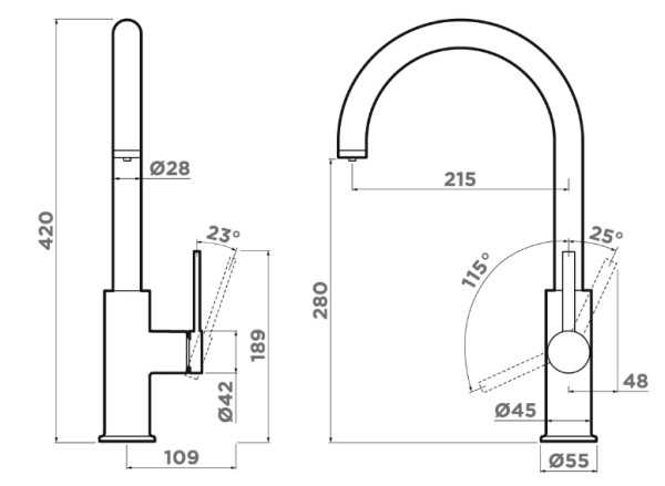 | Высота излива | 28 см |