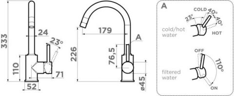 • Новая удобная технология системы ручки "2 в 1 Multi" - позволяет переключить с водопроводной на фильтрованную воду в одно касание;