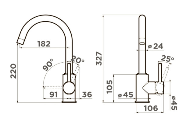 Высота излива 22 см