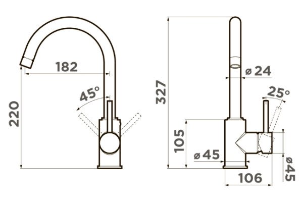 • Практичный однорычажный смеситель выполнен в современном стиле и снабжен высоким поворотным изливом;