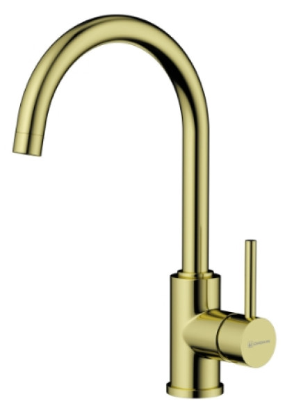 • Практичный однорычажный смеситель выполнен в современном стиле и снабжен высоким поворотным изливом;