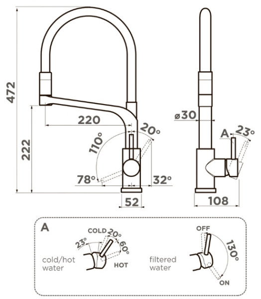 Высота излива 22.2 см
