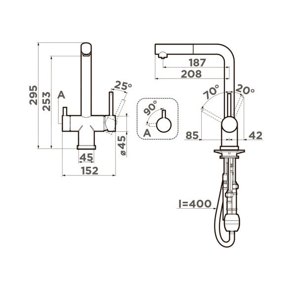 Управление Однорычажный, отдельная ручка для управления питьевой водой