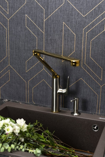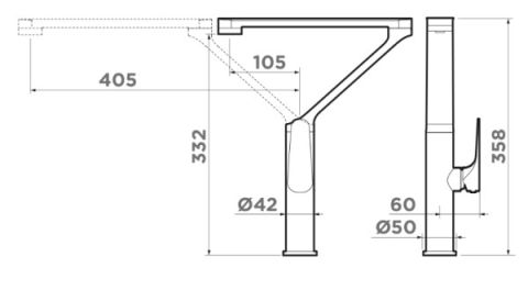 • Высокий поворотный излив и четкие прямые линии