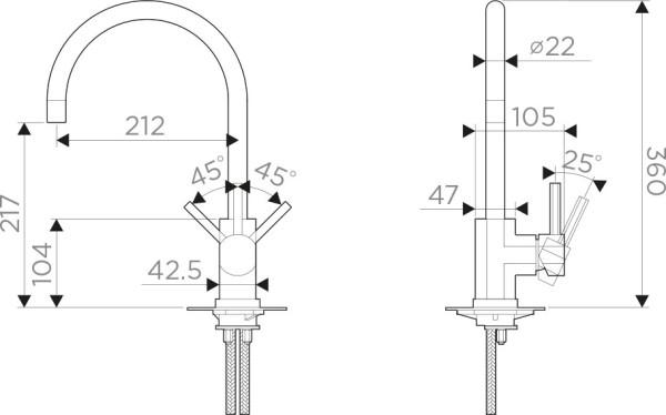 Высота излива 21,7 см