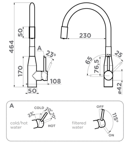 | Тип | Подключение фильтра для очистки воды PURE LIFE, Multi - единый рычаг управления для горячей, холодной и питьевой воды, гибкий шланг |