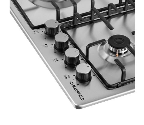 Газовая варочная панель Maunfeld EGHS.64.3STS-ES/G — это надежное и эстетичное решение для современной кухни. Выполненная в классическом цвете «Нержавеющая сталь», модель идеально впишется в любой интерьер. Её ключевыми особенностями являются система «газ-контроль» для безопасной эксплуатации, две съемные эмалированные решетки для простого ухода и интуитивные поворотные элементы управления, позволяющие точно регулировать мощность пламени.