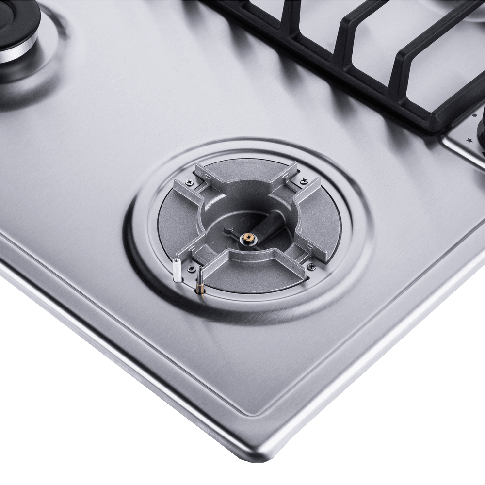 - Полноценный газ-контроль: Функция безопасности, при которой каждая конфорка оборудована датчиком пламени. При его исчезновении электромагнитный клапан блокирует поток газа, предотвращая его утечку.
