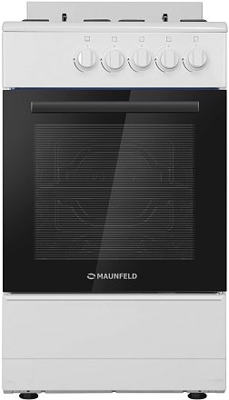 Газовая плита MAUNFELD MGC50GEW01D оснащена системой безопасности газ-контроль, которая прекратит подачу газа, если пламя потухнет. Материал внутренней камеры изготовлен из биокерамической эмали, она позволяет легко отмыть попавший на нее жир. Стекло духового шкафа можно вынимать, это позволяет легче мыть дверцу устройства.