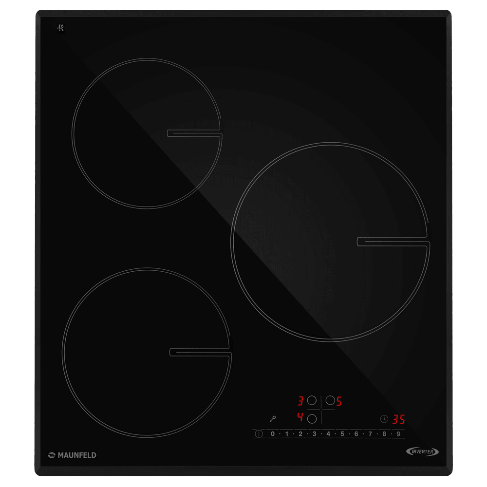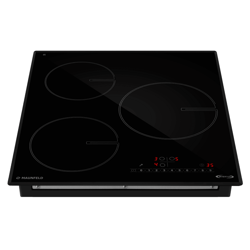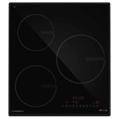 - Высокая производительность и гибкость: Три конфорки разного диаметра позволяют одновременно готовить несколько блюд, а функция Booster мгновенно повышает мощность выбранной зоны для максимально быстрого закипания или разогрева.