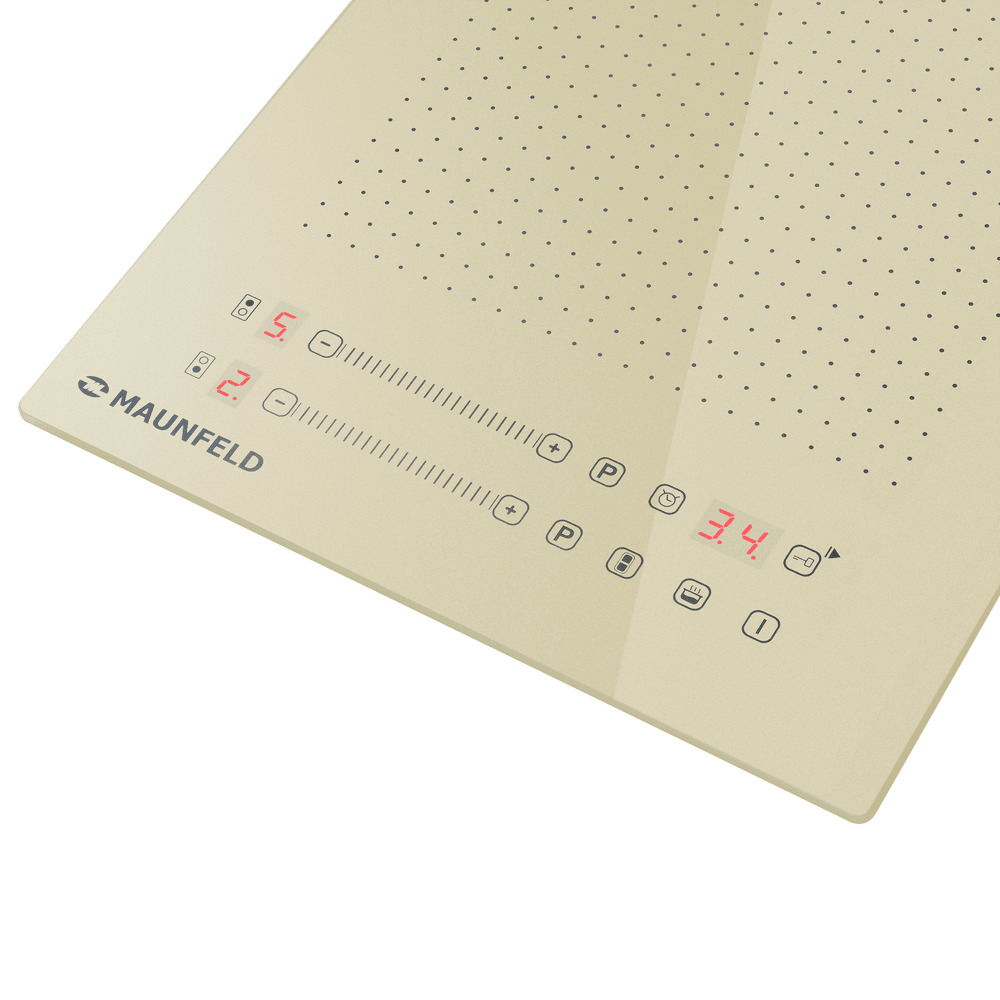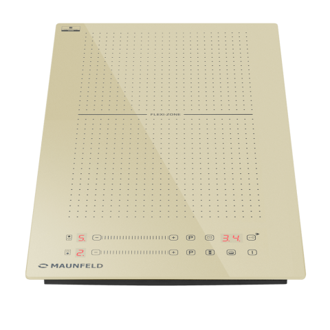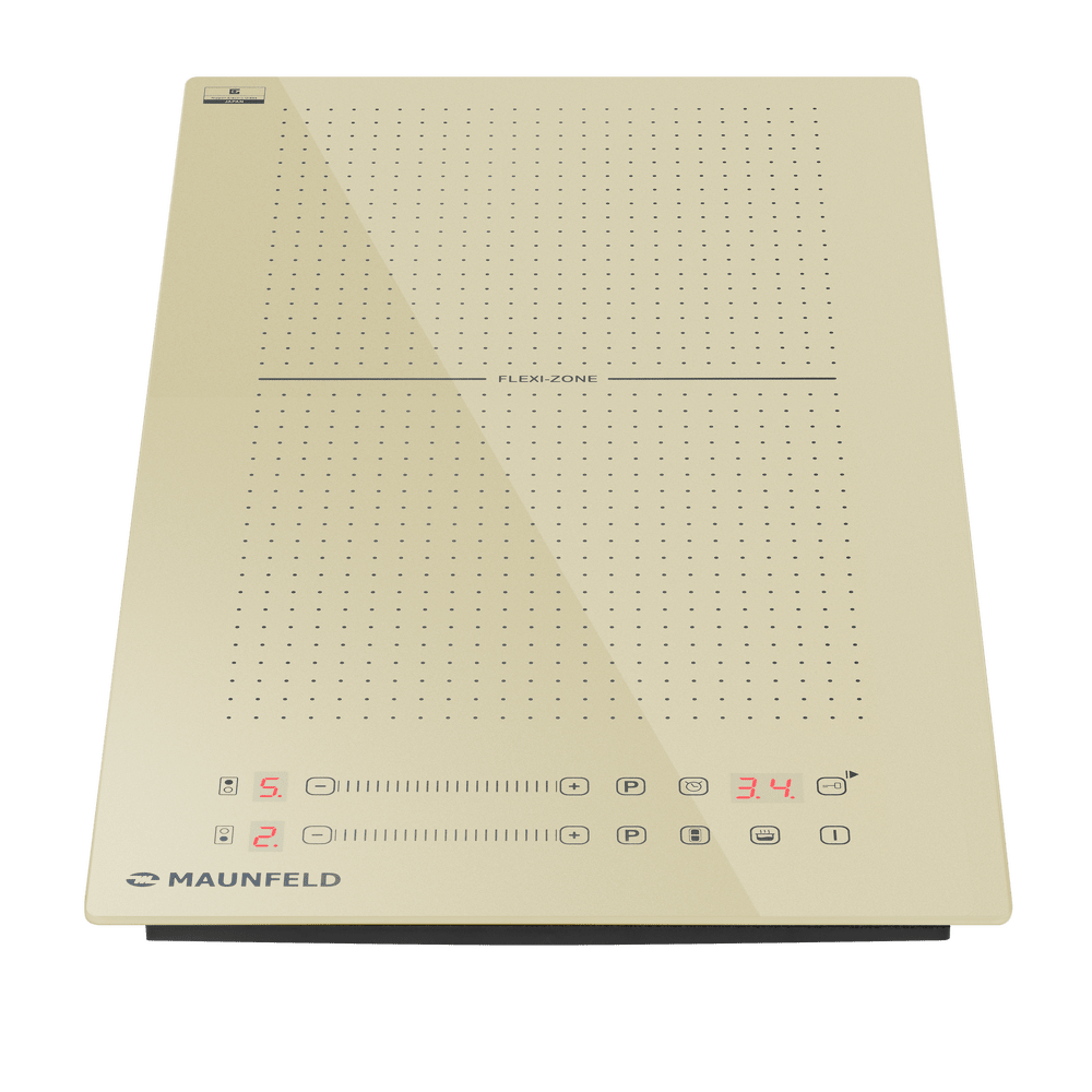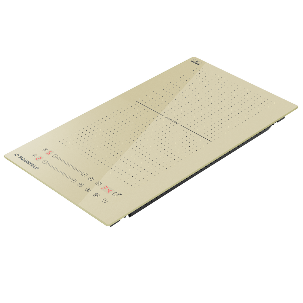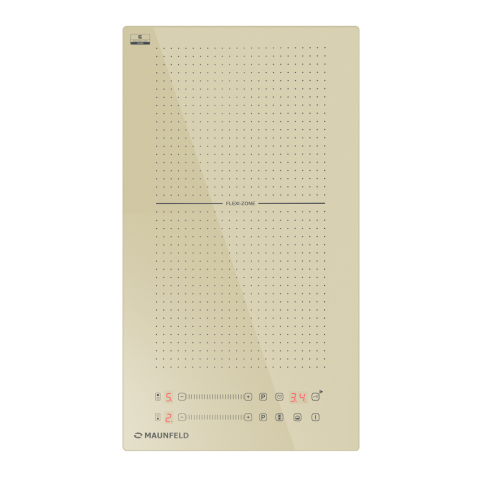 Индукционная варочная панель Maunfeld CVI292S2FBG — это модель, которая выделяется своим уникальным дизайном и инновационной функциональностью в компактном формате. Её поверхность выполнена в утончённом бежевом цвете с нетрадиционными квадратными контурами зон нагрева, что подчёркивает её универсальность для посуды разной формы. Ключевой особенностью является технология FlexZone, позволяющая объединить две конфорки в одну большую рабочую поверхность. Панель управления, расположенная на фронтальной части, оснащена сенсорными элементами и слайдерами для точного контроля, а комплекс защитных систем обеспечивает безопасность использования.