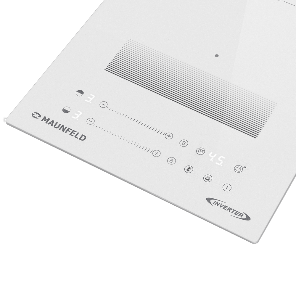 Индукционная варочная панель Maunfeld CVI292S2FWHD Inverter — это ультракомпактное и интеллектуальное решение, идеально подходящее для ограниченного пространства. Модель в белом цвете и стиле «Модерн» отличается минимальной шириной 29 см (при нише 26.5 см) и оснащена двумя индукционными конфорками с уникальной расширенной зоной FlexZone. Ключевой особенностью является инверторная технология управления, обеспечивающая плавный, точный и экономичный нагрев. Сенсорное управление слайдером с 9 ступенями, функции Booster, Stop & Go и комплекс защитных систем делают эту модель функциональной, безопасной и удобной, несмотря на её компактные размеры. Гарантия 24 месяца подтверждает надёжность устройства.