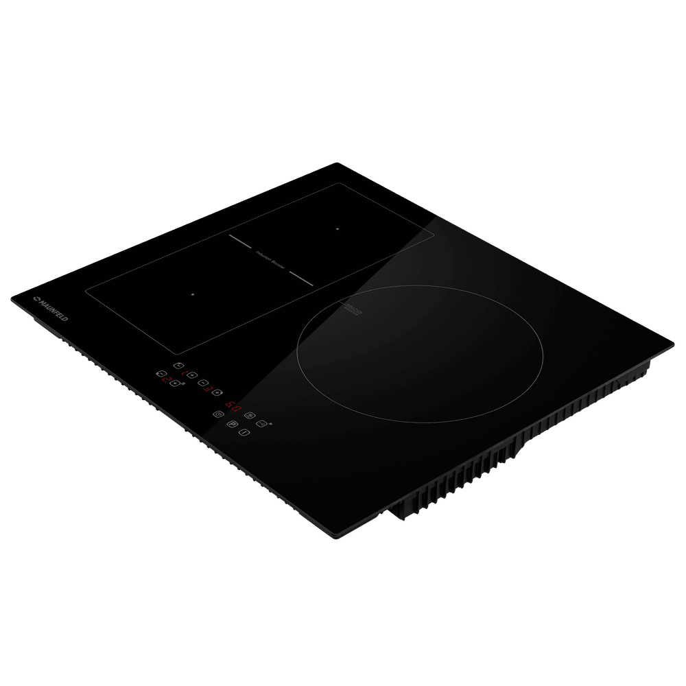 Индукционная варочная панель Maunfeld CVI593BBK — это стильная и функциональная модель с выразительным дизайном. Её поверхность выполнена из чёрной стеклокерамики с контрастными тонкими белыми линиями, подчёркивающими зоны нагрева и придающими элегантность. Панель оснащена тремя индукционными конфорками разной формы, включая уникальную возможность объединения двух левых зон благодаря технологии FlexZone. Центральная сенсорная панель управления с красной индикацией, функции Booster, индивидуальные таймеры и комплекс систем безопасности делают эту модель удобным, гибким и надёжным решением для кухни.