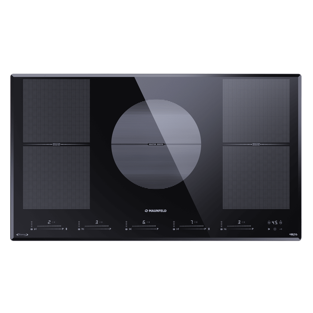 - Наличие пяти индукционных конфорок обеспечивает гибкость при приготовлении блюд: Пять конфорок различной мощности и размера позволяют одновременно готовить несколько блюд, от супов и гарниров до соусов и подлив, что особенно удобно при подготовке сложных обедов или приеме гостей. Индивидуальный таймер для каждой зоны дает полный контроль над временем приготовления.