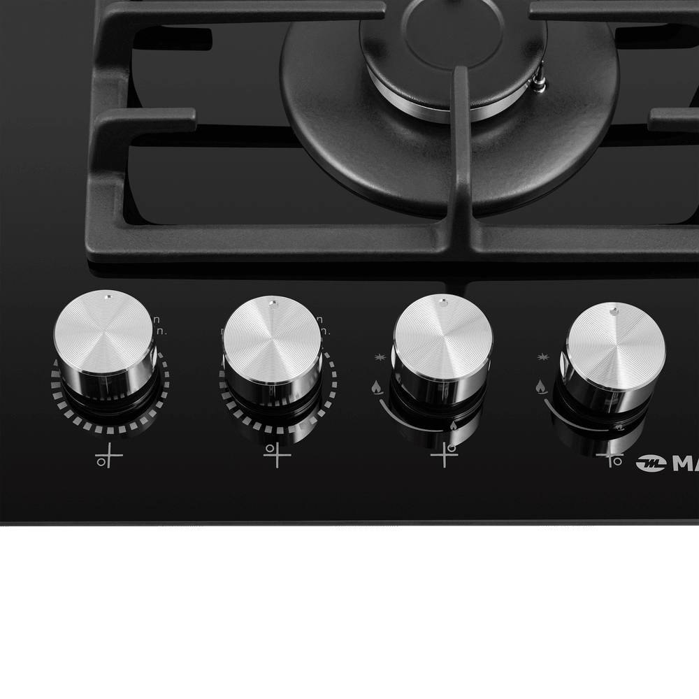 - Прочное стекло и металлические переключатели: Стеклянная поверхность устойчива к высоким температурам и ударам, а цельнометаллические поворотные переключатели обеспечивают долговечность и тактильный контроль.