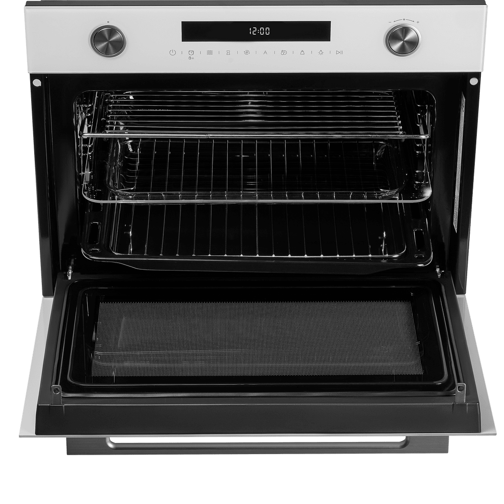 - Двойная функциональность в одном приборе: Уникальное сочетание возможностей духового шкафа и микроволновой печи позволяет запекать, разогревать, размораживать и готовить с грилем, экономя пространство и время на кухне.