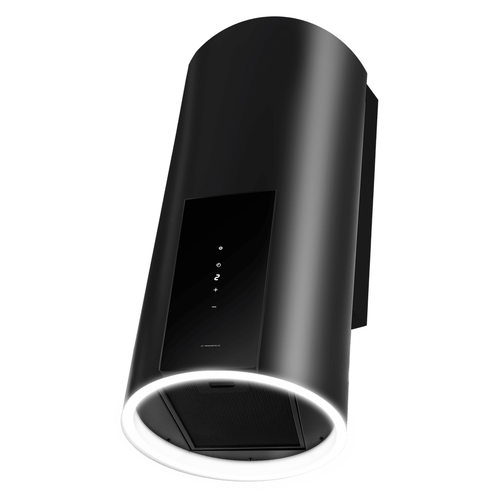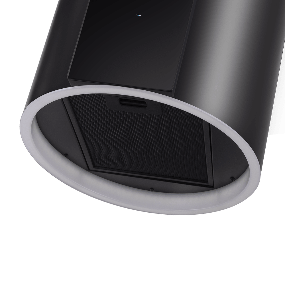• Современный дизайн и функциональность в одном устройстве: Цилиндрический корпус глянцевого черного цвета сочетает в себе элегантный внешний вид, качественные материалы и высокую производительность, делая вытяжку ключевым элементом кухонного дизайна.