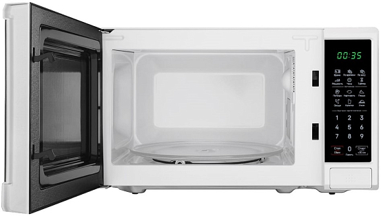 - 10 уровней мощности микроволн: Широкий диапазон регулировки (от 100 Вт до 1050 Вт) позволяет точно адаптировать интенсивность нагрева под разные задачи: от деликатной разморозки и подогрева детского питания до быстрого кипячения и приготовления.