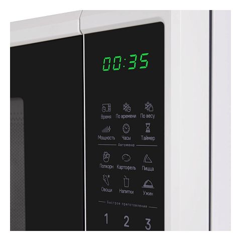- Автоматические программы: Быстрое приготовление, Пицца, Овощи, Попкорн, Ужин, Разморозка и др.