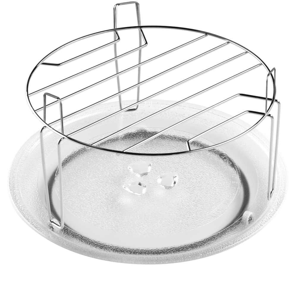 Прибор оснащен функцией гриля для запекания блюд. Вращающаяся тарелка обеспечивает равномерное распределение микроволн. Внутренняя подсветка позволяет контролировать процесс приготовления. Также доступны режимы разморозки и комбинированного приготовления (микроволны + гриль).