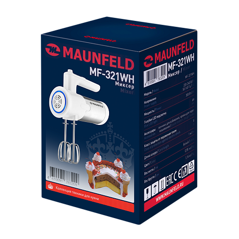 Миксер Maunfeld MF-331BL выполненный из прочного пластика. Модель имеет 5 скоростей ,также в комплекте идут 4 насадки. Эргономичная ручка обеспечит комфорт и удобство в обращении. Очень компактный благодаря своим размерам. Легкий вес, его будет удобно держать в руках, корпус и мотор имеют облегченную конструкцию.