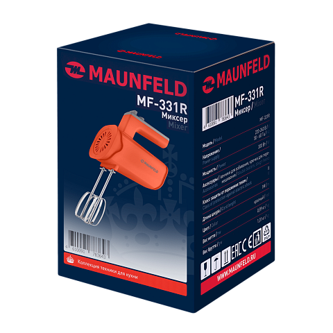 Миксер Maunfeld MF-331R выполненный из прочного пластика. Модель имеет 8 скоростей ,также в комплекте идут 4 насадки. Мощность мотора 300 вт. который справится с любой задачей. Очень компактный благодаря своим разерам. Эргономичная ручка обеспечит комфорт в обращение.