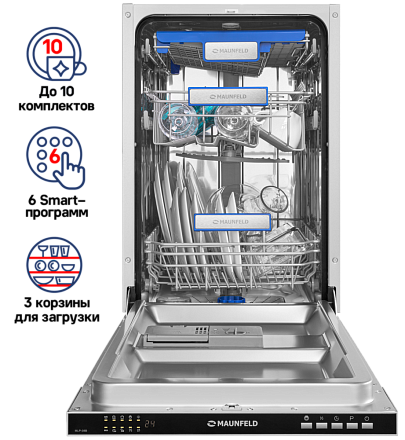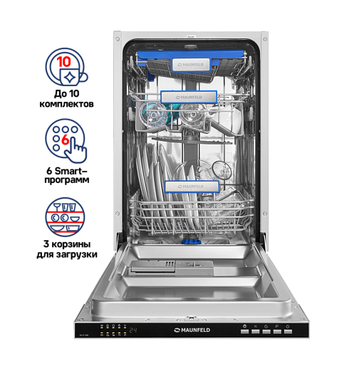 Посудомоечная машина Maunfeld MLP 08B — это образец современной кухонной техники, где каждая деталь продумана для комфорта пользователя. Она объединяет в себе бесшумную работу, энергоэффективность, максимальную безопасность и профессиональное качество мытья, становясь надежным фундаментом для чистоты и уюта в вашем доме.