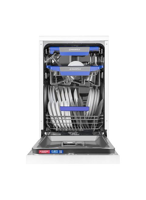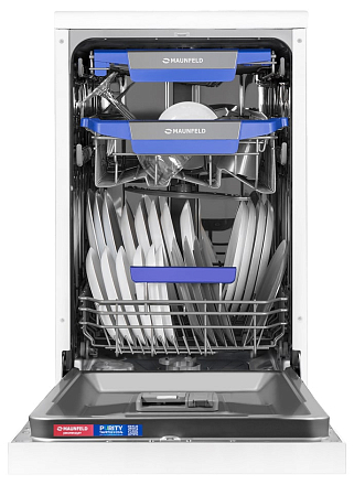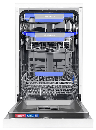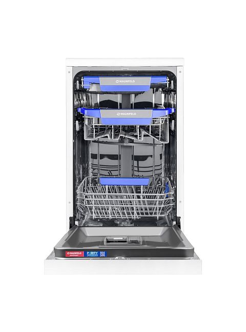 Посудомоечная машина Maunfeld MWF45230W — это узкая отдельностоящая модель в белом корпусе, сочетающая вместительность, экономичность и современный дизайн. Устройство рассчитано на загрузку до 10 комплектов посуды и оснащено тремя секциями, включая регулируемую по высоте верхнюю корзину. Управление осуществляется через интуитивную кнопочную панель с дисплеем. Пользователю доступны семь программ мойки (интенсивная, экономичная, быстрая, автоматическая, для стекла и др.). Для экономии ресурсов предусмотрены функция половинной загрузки, класс энергопотребления A++ и низкий расход воды (9 литров за цикл). Надежность обеспечивает система защиты от протечек AQUA-STOP. Также поддерживаются средства ALL IN 1. Тихая работа (49 дБ) и эффективная конденсационная сушка завершают образ практичного помощника.