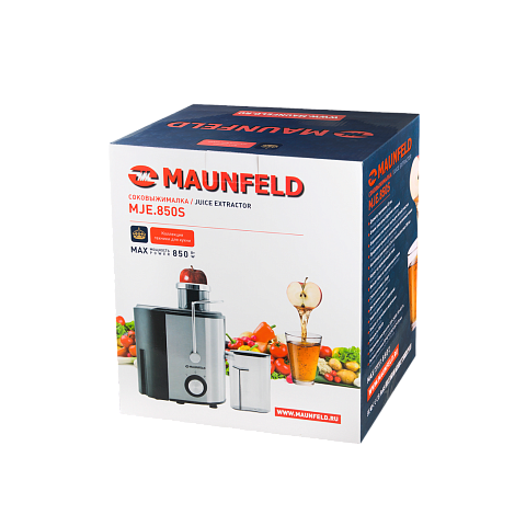 MJE.850S — это электрическая соковыжималка, имеющая два режима скорости. Материал корпуса — нержавеющая сталь. Возможен отжим сока из целых овощей и фруктов. Модель имеет прозрачную крышку и нескользящие резиновые ножки.
