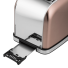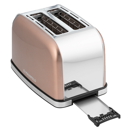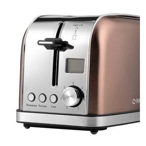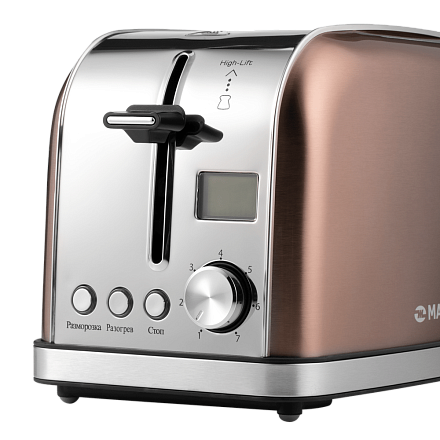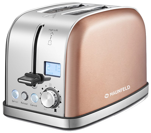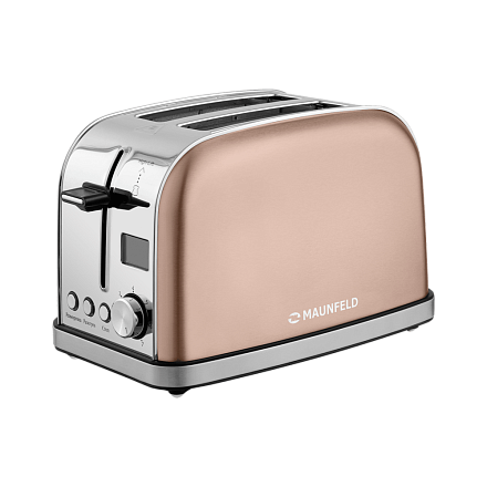 Тостер Maunfeld MF-821BZ выполнен из нержавеющей стали в цвете бронза. При помощи удобного механического программатора Вы можете выбирать степень обжарки, а 3 режима работы изделия позволят подогреть, разморозить или поджарить тосты.
