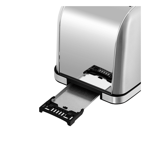 Элегантный тостер Maunfeld MF-822S выполнен из нержавеющей стали и имеет два отсека для тостов. Благодаря автоцентрированию тосты всегда располагаются посередине между нагревателями, и поэтому обжариваются равномерно с обеих сторон. Подсветка элементов управления будет удобна при эксплуатации прибором. Чтобы упавшие с хлеба крошки не сгорели в устройстве и не стали причиной неприятного запаха, в модели предусмотрен выдвижной поддон для крошек. Он легко вынимается и очищается.