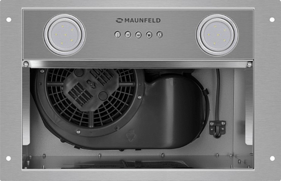 Maunfeld Cam 45 Inox оснащена механическим управлением с кнопочными переключателями, что обеспечивает простоту и надежность в эксплуатации. Вытяжка предлагает три скорости работы, позволяя выбрать оптимальный режим в зависимости от интенсивности приготовления пищи. Светодиодное освещение с двумя лампами по 2 Вт каждая обеспечивает яркий и равномерный свет над рабочей зоной, что способствует комфортному приготовлению блюд.