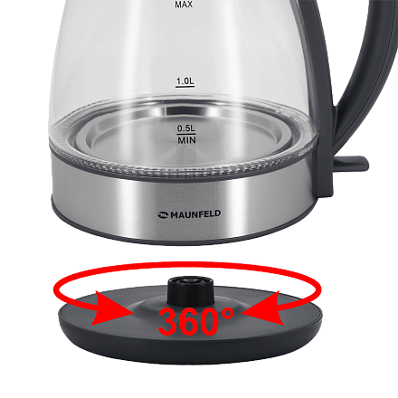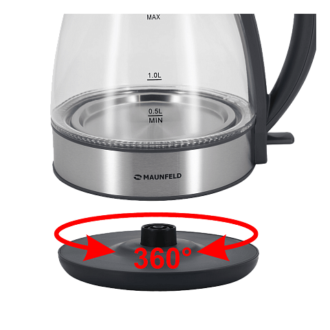 Электрический чайник MAUNFELD MFK-634G.SP выполнен из боросиликатного стекла повышенной прочности в комбинации с хромированными вставками. Прибор быстро вскипятит или подогреет до 1.7 литра воды. Прозрачный корпус и светодиодная кольцевая подсветка вокруг нагревательного элемента, которая освещает всё стекло полностью во время нагревания или кипячения воды, делает устройство стильным и удобным аксессуаром на любой кухне. Дополнительная индикация уровня воды, блокировка крышки, а также съемный фильтр повышают удобство использования.Чайник может поворачиваться на 360 градусов в любую сторону вокруг своей оси. Закрытый нагревательный элемент не контактирует с водой и не подвержен коррозии, что увеличивает долговечность эксплуатации.
