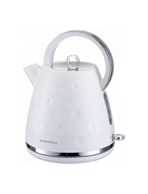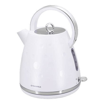 Электрический чайник MAUNFELD MFK-647WH сочетает в себе белое матовое покрытие и элементы глянцевого декора с хромированными вставками. Для производства корпуса использованы нержавеющая сталь, термостойкое стекло и специальный пластик. Металл гарантирует долговечность и надежность использования, а пластик — практичность. Устройство устойчиво к износу, различным механическим повреждениям и ударам.