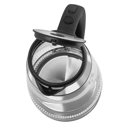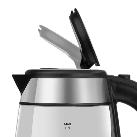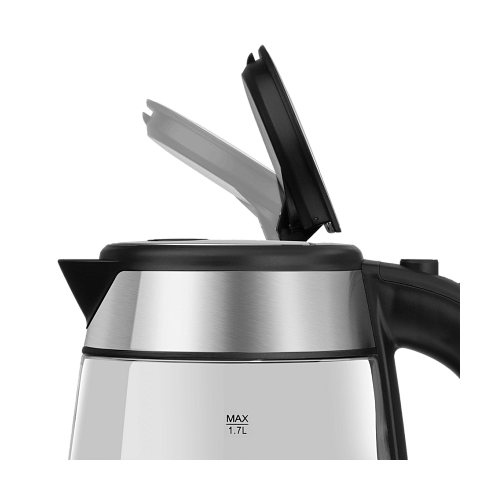 Объем техники составляет 1.7 литра, что достаточно для приготовления большого количества напитка. Дизайн выполнен в стиле «Модерн», что делает прибор актуальным для любого интерьера. Корпус устройства изготовлен из боросиликатного стекла, что придает ему эстетический вид и обеспечивает долговечность. Цвет нержавеющей стали и стекла идеально сочетаются, создавая элегантный и современный образ.