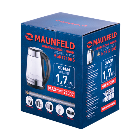 Чайник Maunfeld MGK1710GS — это современное устройство, которое сочетает в себе элегантность дизайна и функциональность. Произведенный в Китае, прибор обладает гарантией в 12 месяцев, что подтверждает его надежность и долговечность. Он имеет удобные размеры: высота — 22 см, ширина — 22 см, глубина — 14.6 см, что позволяет удобно разместить его на любой кухне.