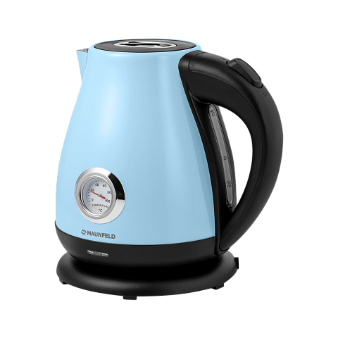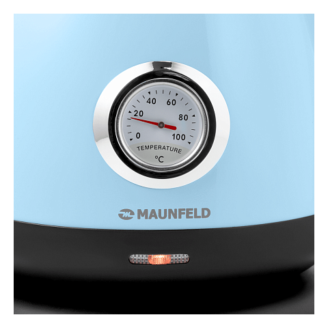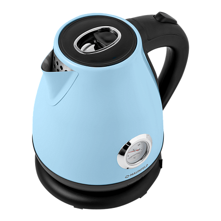 Чайник MGK-625BL в голубом цвете оснащен отсеком для хранения шнура. Функция регулировки температуры позволит не доводить до кипения, а поддерживать нужный нагрев воды, который легко отследить на индикаторе.