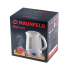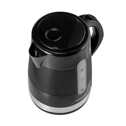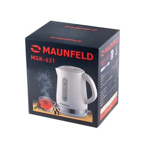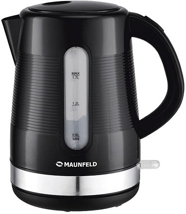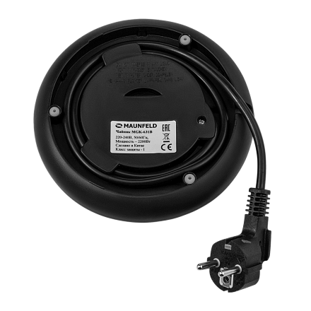 Чайник Maunfeld MGK-631B в черном цвете с хромированной вставкой оснащен автоматически открывающейся крышкой. Объем до 1,7 литра позволит вскипятить оптимальное количество воды. Отсек для хранения шнура обеспечит удобство использования.