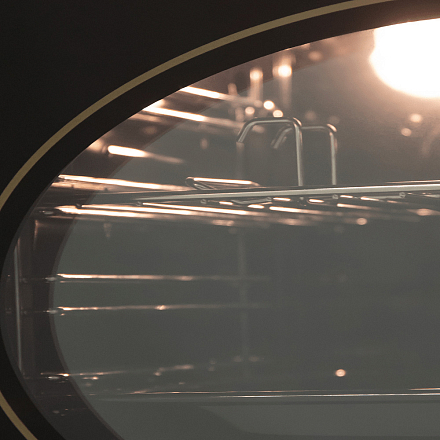 - Эффективная теплоизоляция и контроль: Дверца с трехслойным стеклом отлично удерживает тепло внутри, повышая энергоэффективность, и предотвращает нагрев передней панели. Внутреннее освещение позволяет следить за процессом, не выпуская жар.