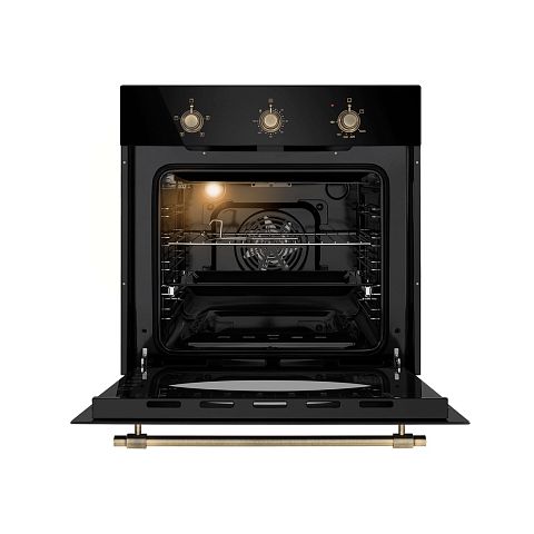 Газовый духовой шкаф Maunfeld EOGC604RBG.MT Slim — это уникальная модель, где передовые технологии встречаются с элегантным ретро-дизайном. Прибор выполнен в черном корпусе с эффектной бронзовой фурнитурой и оснащен четырьмя режимами работы, включая электрический гриль и конвекцию. Особый шарм придают винтажные механические поворотные переключатели. Благодаря щадящей паровой очистке AquaClean, дверце с трехслойным стеклом и продуманной комплектации с телескопическими направляющими, духовой шкаф предлагает не только стильный внешний вид, но и современный, удобный подход к приготовлению и уходу.