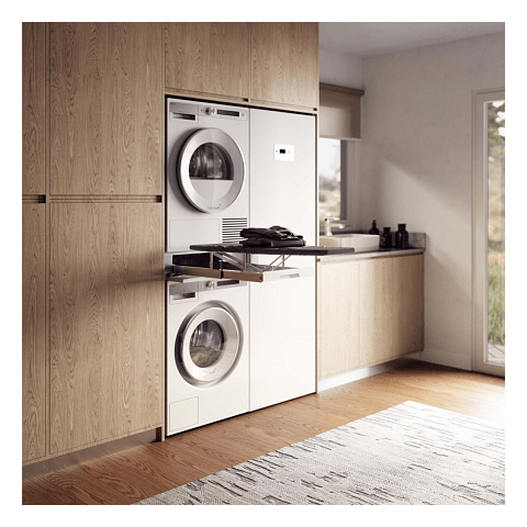 Благодаря компактным габаритам 15 × 59.5 × 58.7 см доска легко интегрируется в пространство между стиральной и сушильной машинами. Вес конструкции 21 кг гарантирует устойчивость и безопасность во время глажки. Продуманный выдвижной механизм обеспечивает плавное и легкое использование.