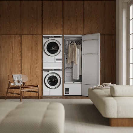 Система теплового насоса обеспечивает экономичную и бережную сушку. Электронное управление с цветным TFT-дисплеем и кнопочными переключателями позволяет удобно настраивать параметры работы. Наличие парогенератора расширяет функциональные возможности устройства.