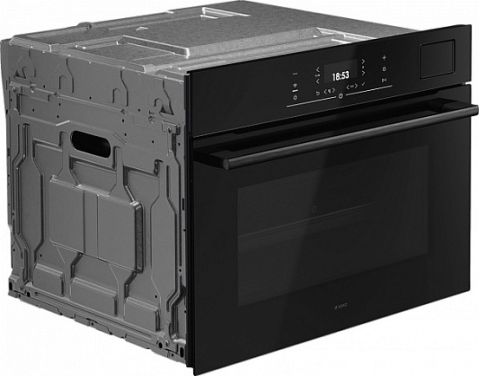 Прибор рассчитан на встраивание в стандартную нишу размером 45–45,5 × 56 × 55 см. Его внешние габариты — 45,8 см в высоту, 59,4 см в ширину и 56,4 см в глубину — при этом внутренний объём составляет 51 литр, что достаточно для повседневной готовки и кулинарных экспериментов.