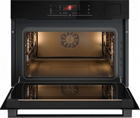 Также реализованы функции подъёма теста, разморозки, сушки, консервирования, стерилизации, подогрева посуды и поддержания температуры готовых блюд. Для ухода предусмотрена гидролитическая система Aqua Clean, а съёмное стекло дверцы упрощает доступ к труднодоступным зонам.