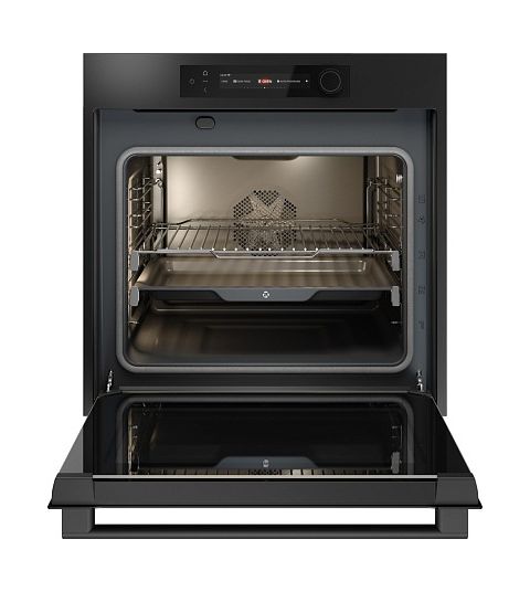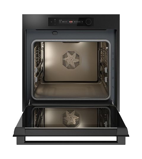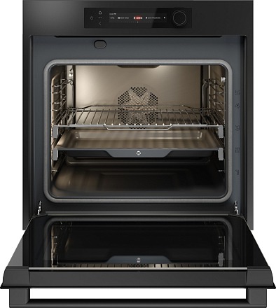 Двустороннее светодиодное освещение с регулировкой яркости и цветовой температуры позволяет контролировать процесс приготовления. В комплектацию входят 2 противня, 1 решётка и термощуп для контроля температуры блюд.