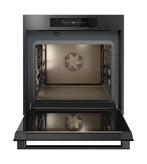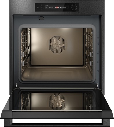 Дизайн выполнен в строгом стиле: цвет чёрной нержавеющей стали эффектно сочетается с дверцей из чёрного стекла. Прибор органично впишется в интерьер современной кухни.